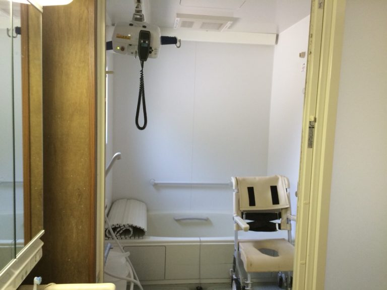 玄関横からテラスに延びるスロープ・屋内エレベーター・リフト3台(お風呂用含む)等の設備があり、安心してお泊まり頂ける環境を整えています。